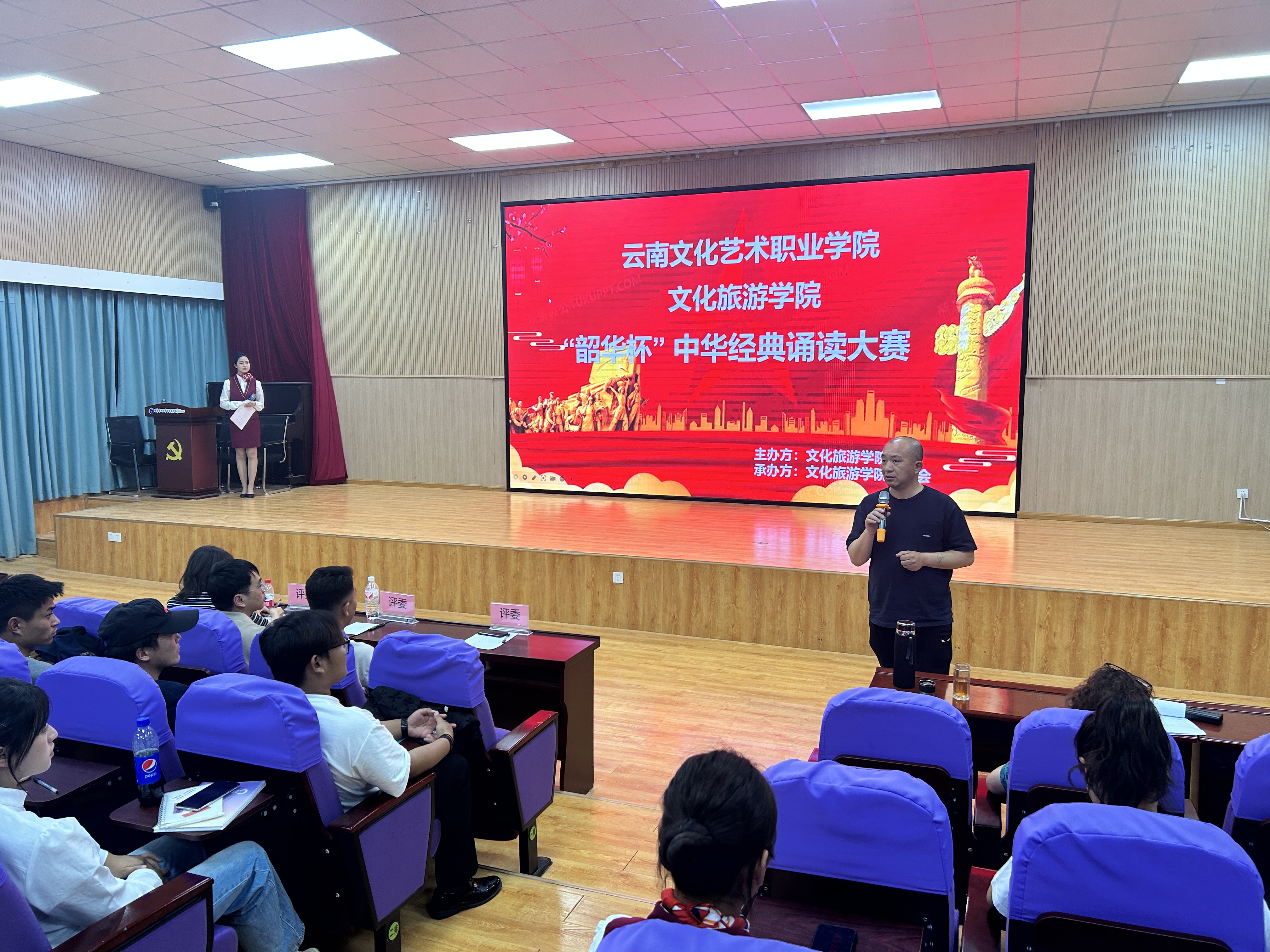 为进一步深入贯彻党的二十大精神,践行习近平总书记在全国宣传思想文化工作会议的重要指示和要求,将习近平文化思想融入学校思想政治教育中,科学地转化为大学生的优质精神食粮,2024年4月9日至10日文化旅游学院分别在卧云校区和大观校区举办了“韶华杯”经典诵读比赛。