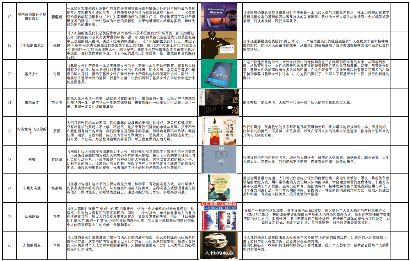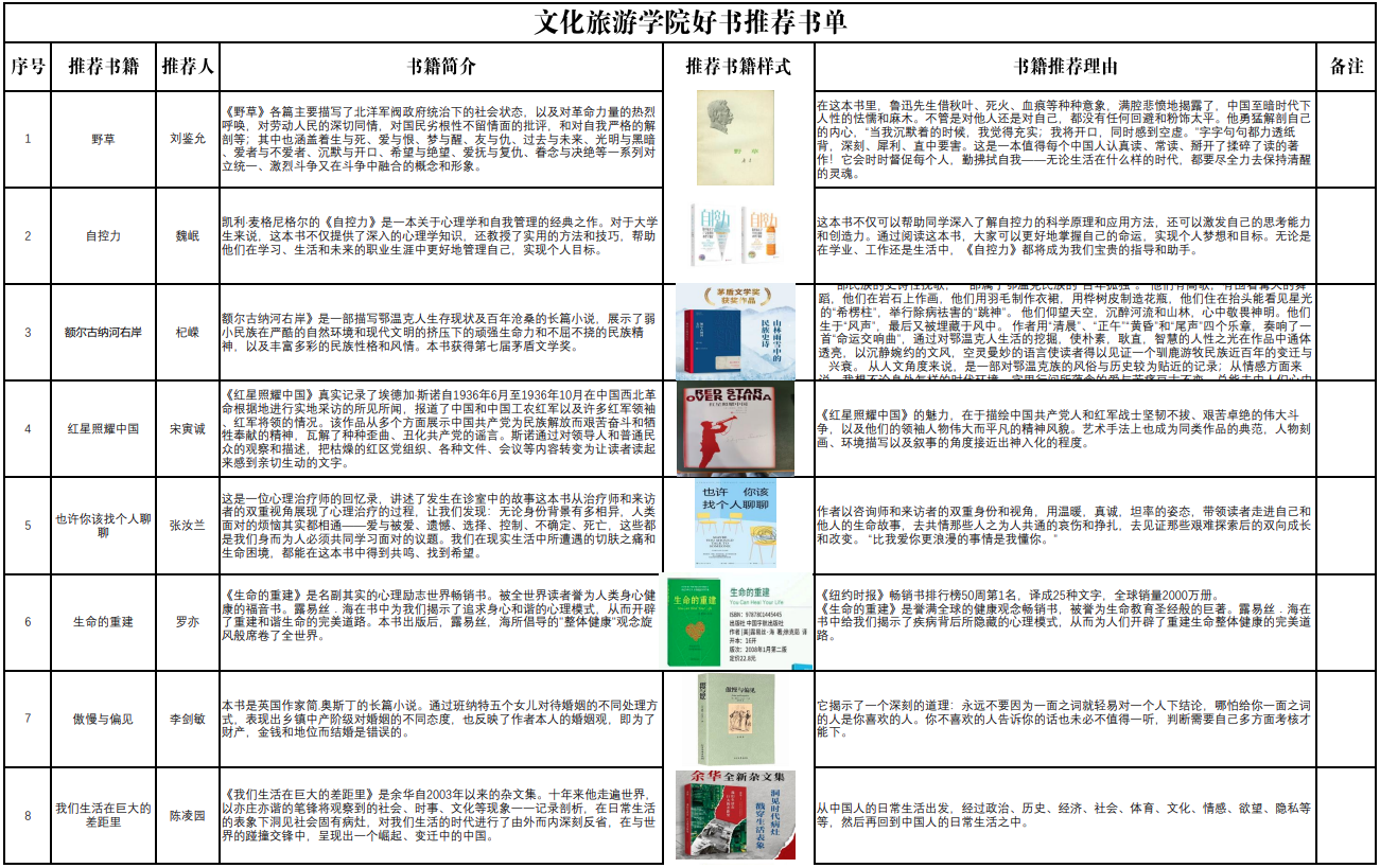在习近平文化思想的指引下,文化旅游学院积极践行新时代高校宣传思想文化工作使命任务。在4月23日世界读书日之际,文化旅游学院开展了第二届好书推荐活动。