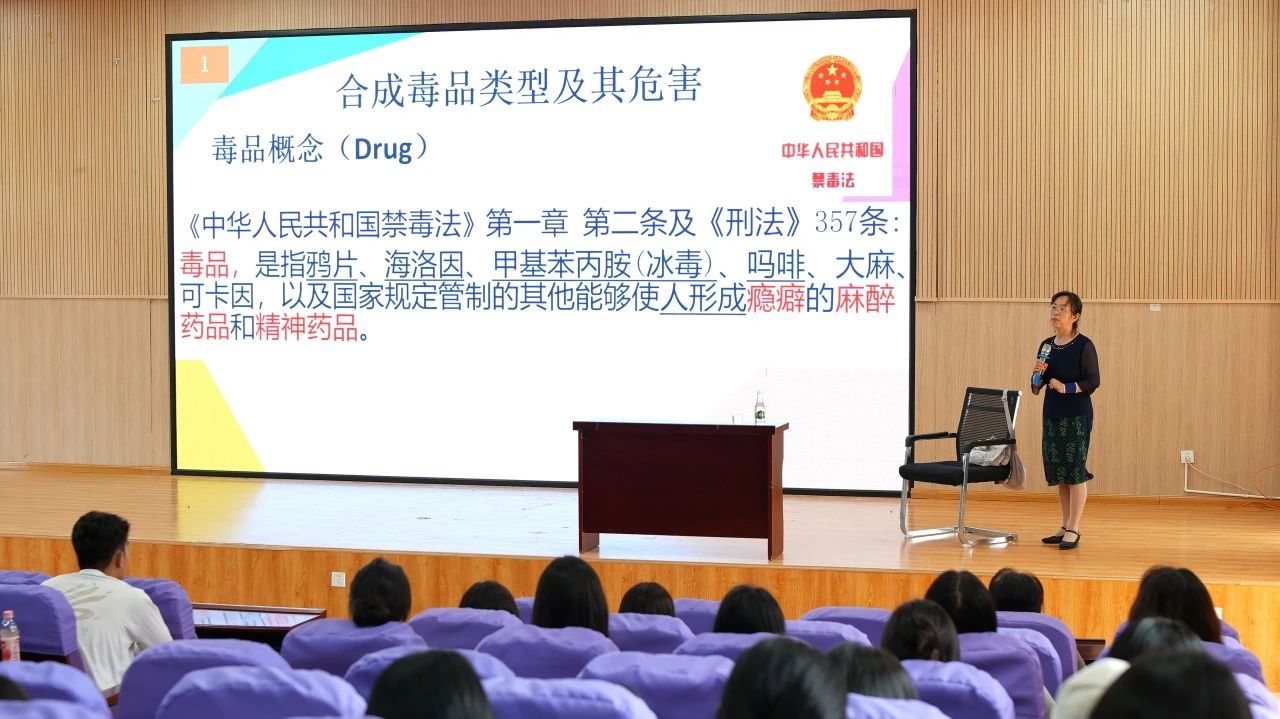 2024年6月26日是第37个国际禁毒日,为全面落实国家禁毒委员会《关于加强新时代全民禁毒宣传教育工作的指导意见》,进一步增强学校学生禁毒防艾意识,形成人人关注,人人参与宣传禁毒防艾知识的氛围,6月28日下午,文化旅游学院邀请了昆明医科大学基础医学院教授龙榕老师,在大观校区报告厅开展了“拒绝毒品 拥抱健康”主题的健康教育知识讲座,100余名师生聆听了此次讲座。