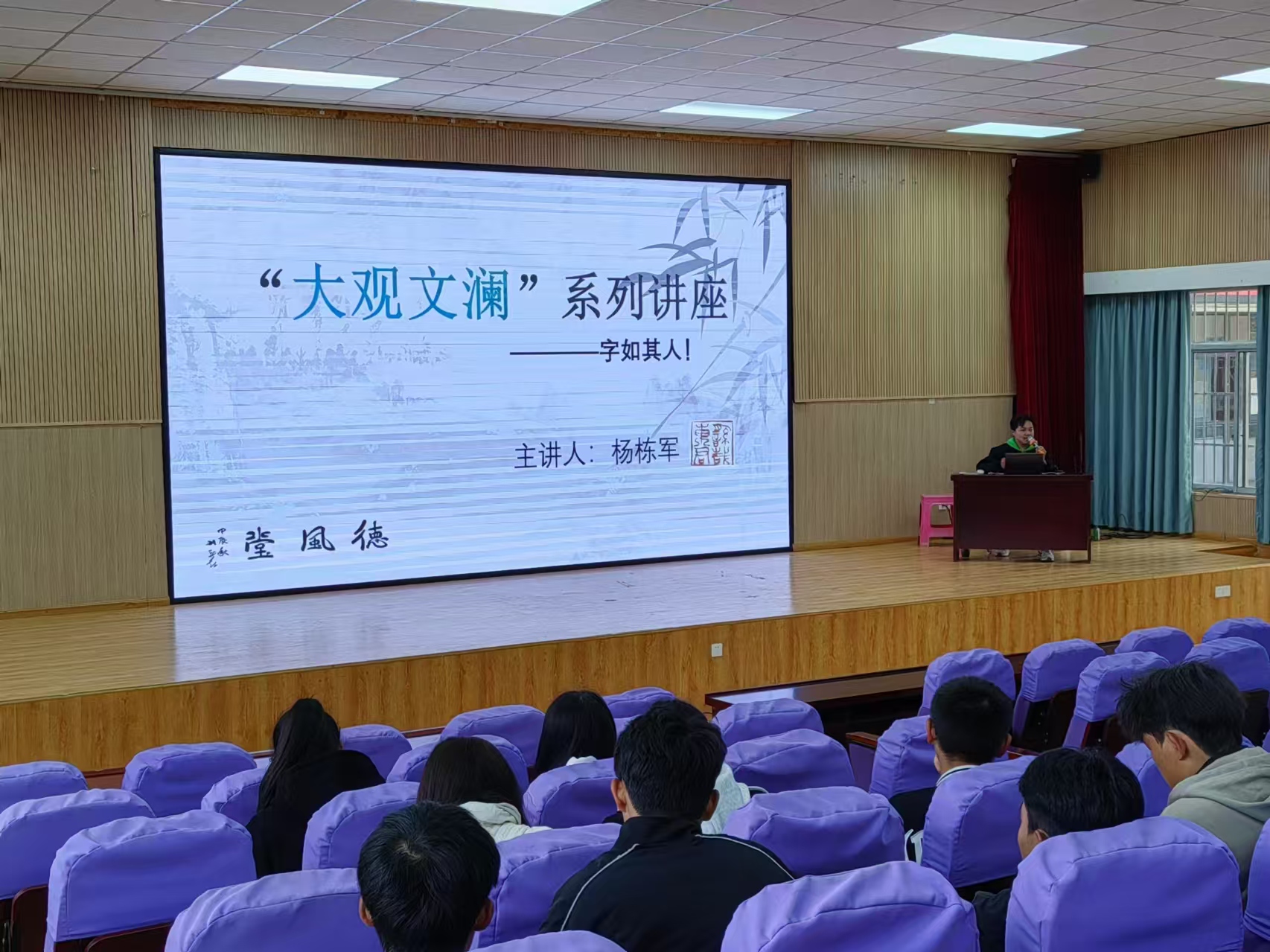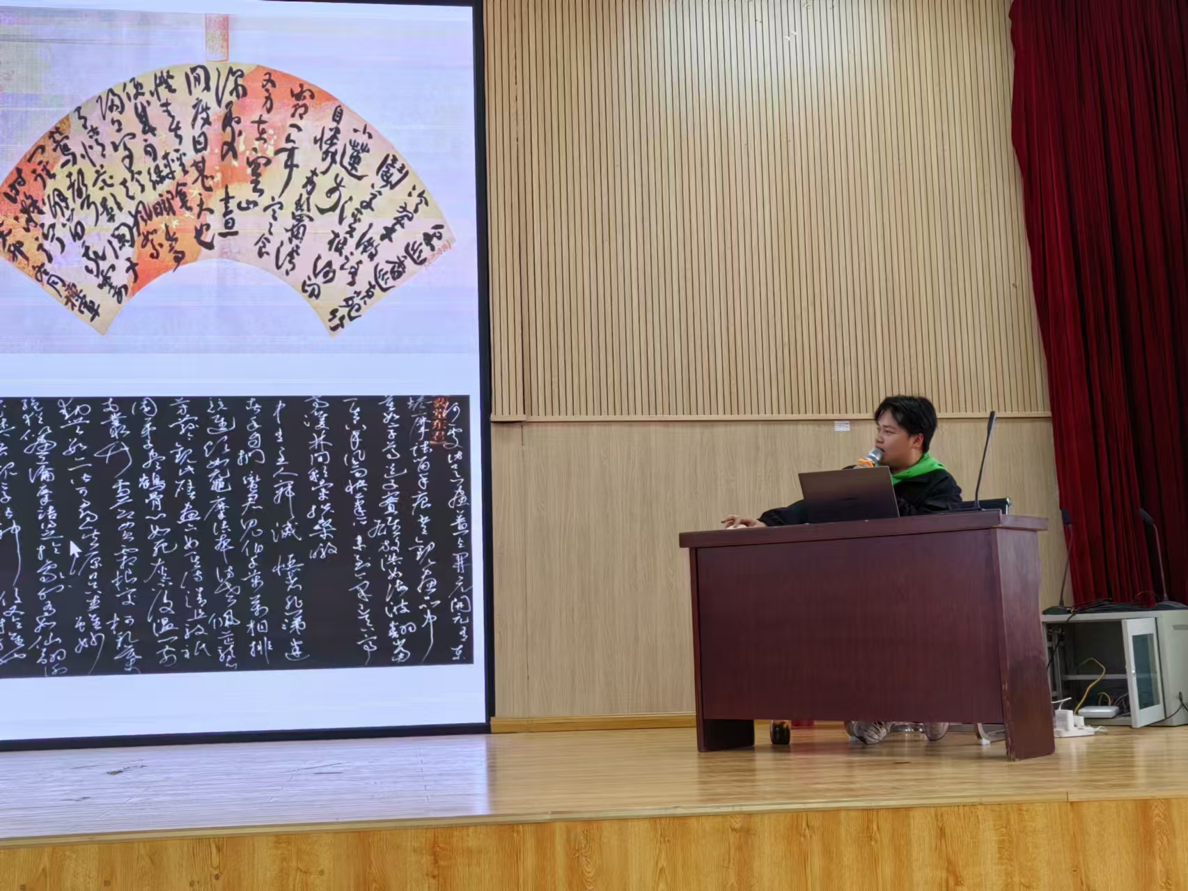 宣讲会上,杨栋军同学以饱满的热情和深厚的书法功底,引领师生们领略书法艺术的独特魅力。他深情回忆了自己在校时的点点滴滴,分享了与书法结缘的故事。从最初对书法的好奇与探索,到后来的痴迷与执着,杨栋军同学用自身经历诠释了 “字如其人” 的深刻内涵。
