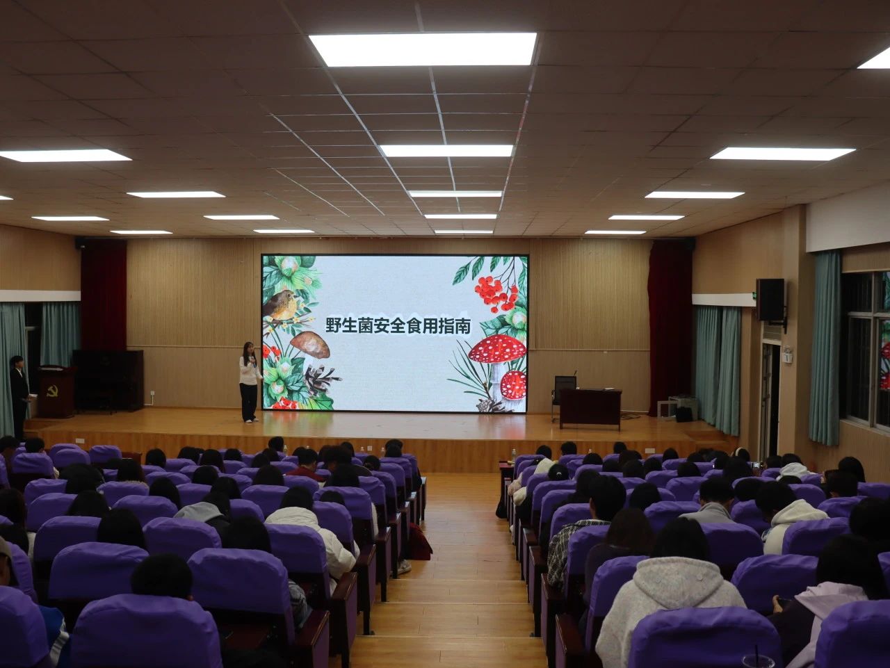 讲座结束时,主持人李富恒同学强调了辨别有毒野生菌在校园安全教育中的重要性,并呼吁同学们将讲座知识转化为自我保护意识并传递给他人。