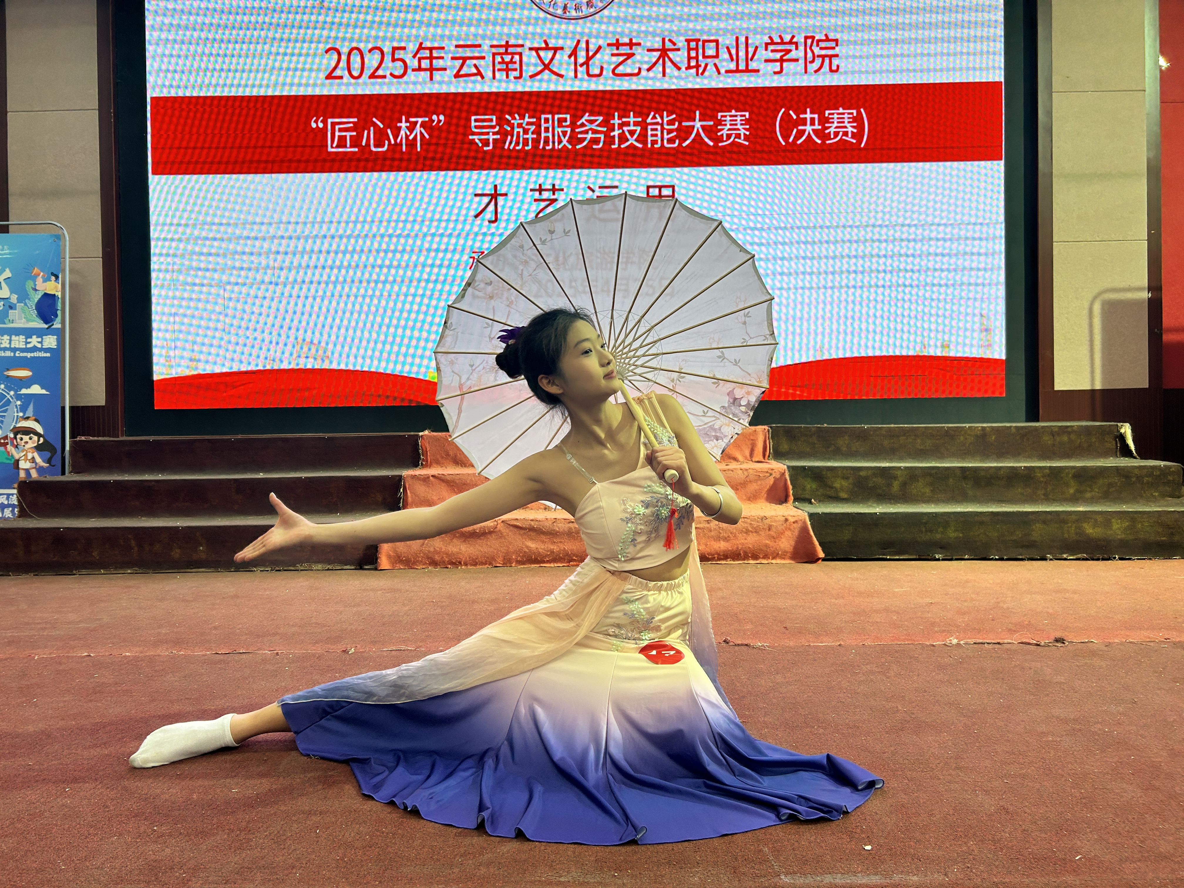 在才艺展示环节,文化旅游学院院长杞嵘担任评委,舞蹈专业教师芮子淇从专业视角给出细致且具建设性的指导意见。此次大赛为学生搭建了实践锻炼的优质平台,有效弘扬旅游文化魅力。未来,文化旅游学院将以赛为契机,持续深化产教融合,着力培养新时代高素质旅游人才,推动旅游专业群内涵式高质量发展。