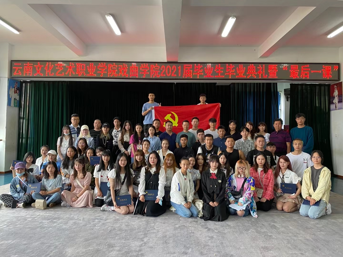 离别在即、杨帆起航。在这个毕业的季节6月25日上午9:30,戏曲学院2021届毕业生毕业典礼暨“最后一课”在3-103教室举行。到场人员有戏曲学院领导、辅导员、毕业班班主任、全体毕业生。今天相聚在这里为同学们的学习生活画上圆满的句号,上好在校的最后一堂课。
