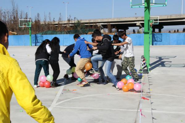 本次趣味运动会共有六个活动项目,分别是:踩气球、小球逃生 、瞎子背瘸子 、杯水运输 、过河搭桥和火车快开 。这些项目都是以团体为参赛形式,其中形体艺术系的参赛队伍在比赛中跌倒又爬 起并继续完成比赛的毅力引得场边观众阵阵欢呼。