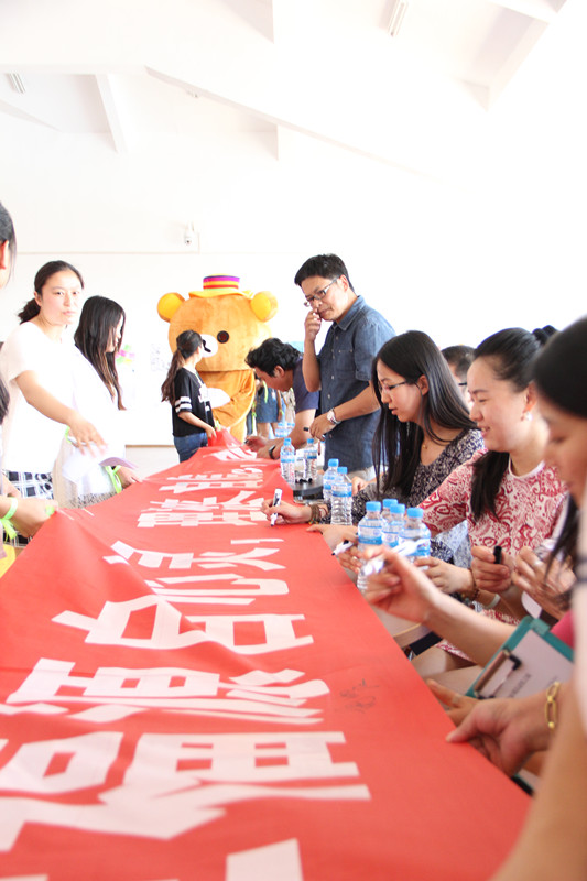 传媒系学生代表宣读了《大学生心理健康活动倡议书》,倡导广大师生共同关注心理健康,营造出“人人关注心理健康,人人心理健康,处处青春洋溢,彼此关爱心灵”的良好氛围。紧接着,主持人对本次活动的内容进行了逐一介绍,教师和学生现场进行了“横幅签名”和“爱的抱抱”活动。
