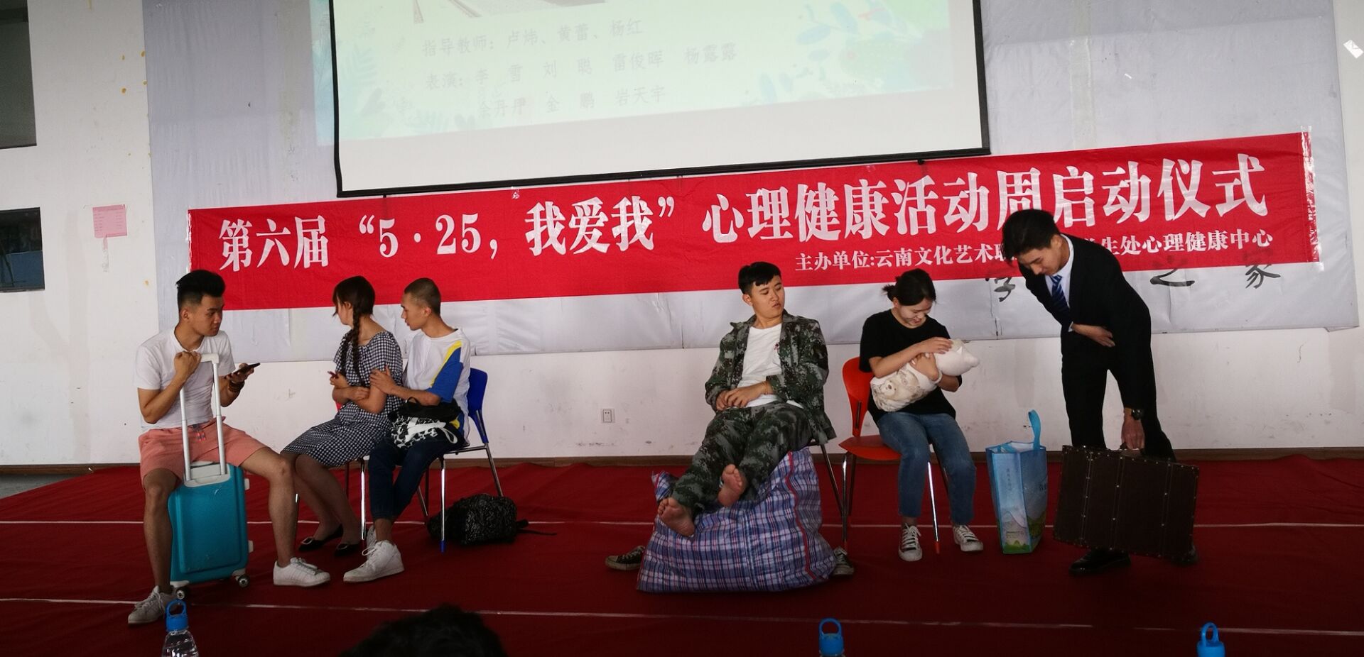 5月21日下午,学生之家隆重举行以“礼让平和 积极人生”为主题的第六届“5 25心理健康活动周”启动仪式。翟斌副校长、党委宣传统战部部长张毅、党委组织部主任丁戎、戏曲学院党总支书记马志坚、设计与传媒学院党总支书记王贵能、舞蹈学院党总支书记栾亚敏出席仪式,各二级学院学生工作负责人、全体辅导员、班主任代表及各学院学生代表共200多人参加了启动仪式。仪式由学生处心理健康中心杨红老师主持。