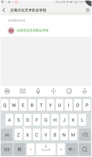 3、输入“云南文化艺术职业学院”,并点击我校公众号并“关注”;