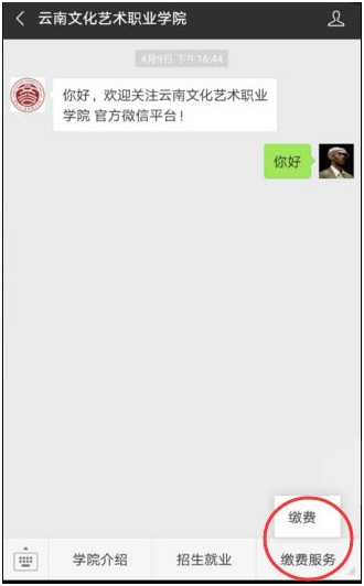 2.学费通过我校官方微信公众号“云南文化艺术职业学院”缴交(见附件)。
