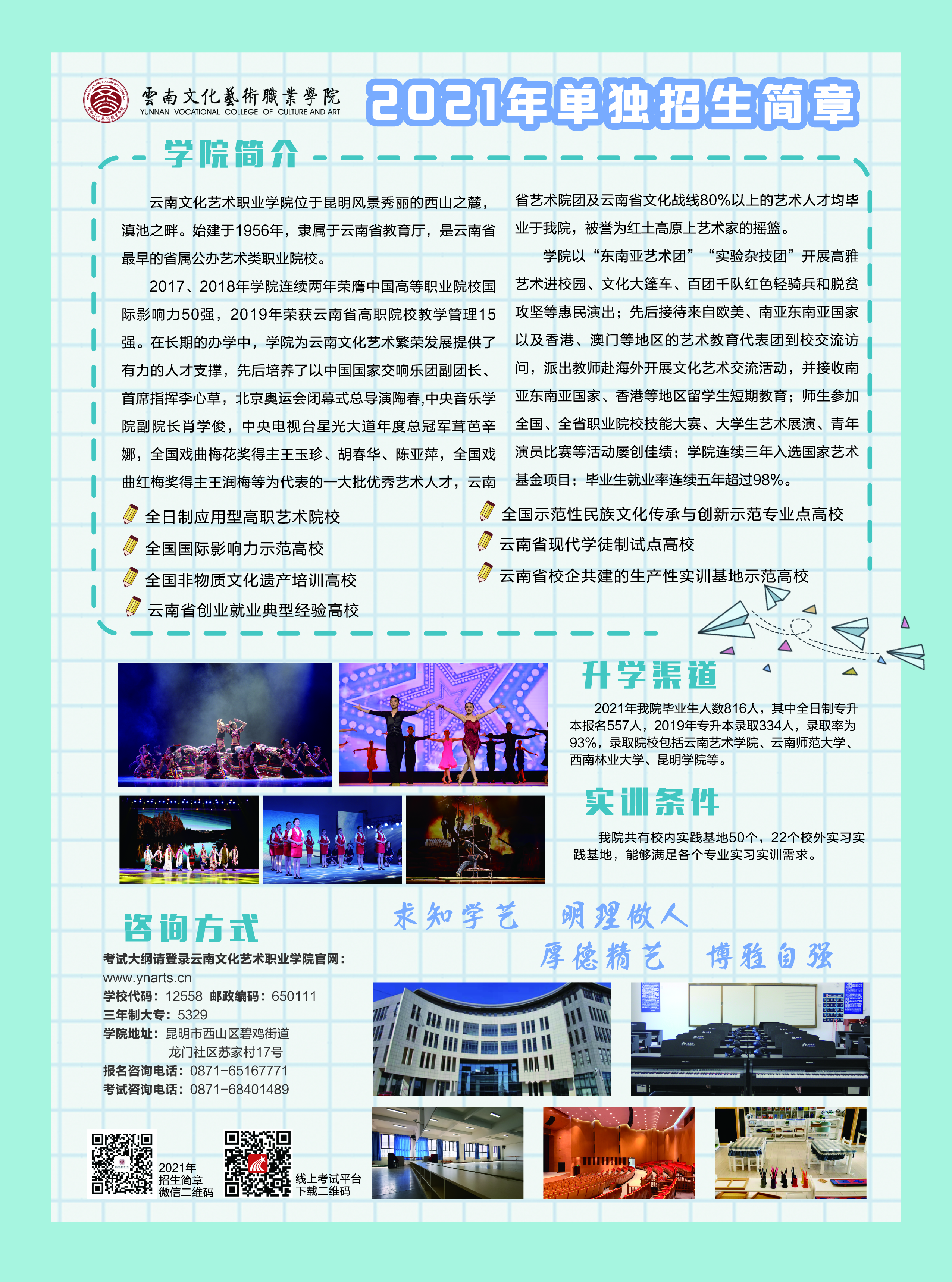 年云南文化艺术职业学院单独招生简章: