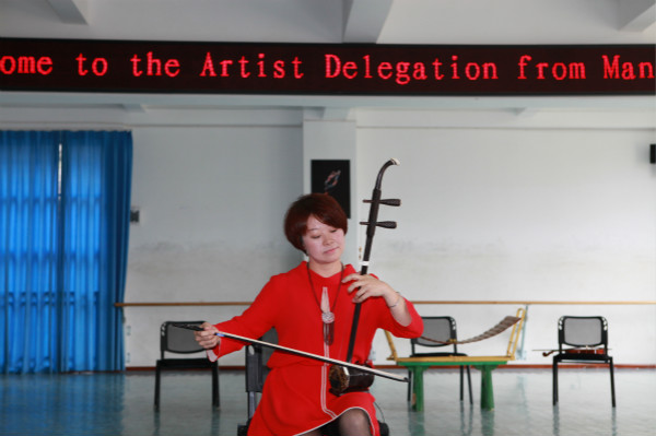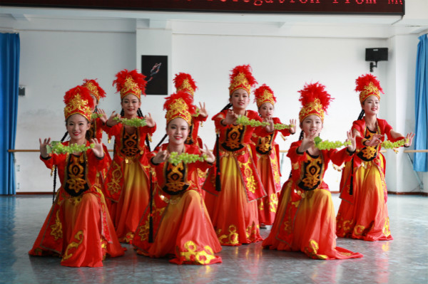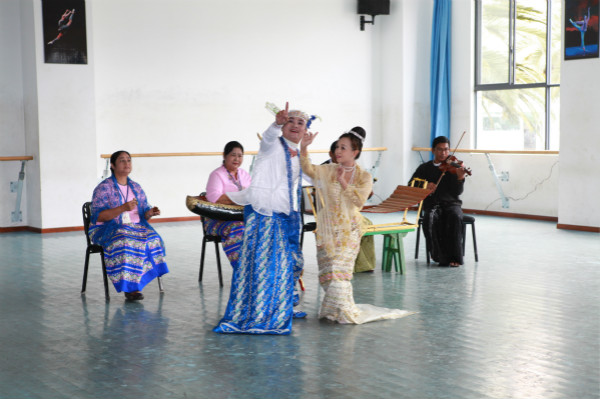 两个多小时的访问交流,缅甸曼德勒艺术家代表团的艺术家们仍然意犹未尽,不舍离开。我院为曼德勒艺术家代表团献上了舞蹈《走在山水间》、《丰收时节》,杂技表演《柔术》、《转毯》和戏曲身段组合等节目,赢得了艺术家们的阵阵赞誉。随后,曼德勒艺术家代表团也为我院师生表演了缅甸的舞蹈和歌曲,与我院师生进行了交流互动。