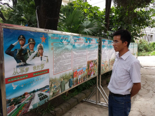 6月17日上午,为让我院的武装宣传工作能够做到更加扎实有效,促进大学生更好的了解入伍政策,帮助有入伍志愿的大学生顺利参军,报效祖国,学院武装部联合中国人民解放军昆明西山区人民武装部,在我院开展2015年度夏秋季征兵宣传咨询活动。西山区武装部副部长、参谋,我院武装部副部长、干事参加了此次活动。