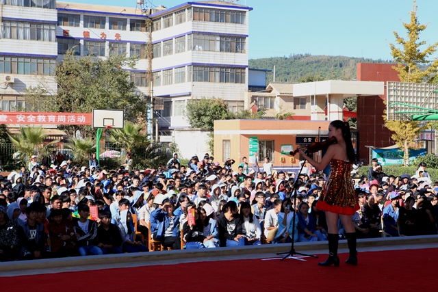 学院艺术团带着花灯、杂技、舞蹈、乐器演奏等经典节目分别来到嵩明县龙街办事处、杨林镇及嵩明县职业高级中学,演员们精彩的表演,让观看的乡亲和学生们欢笑不断,掌声不断。给予了“文化大篷车•千乡万里行”文化惠民演出活动高度评价。