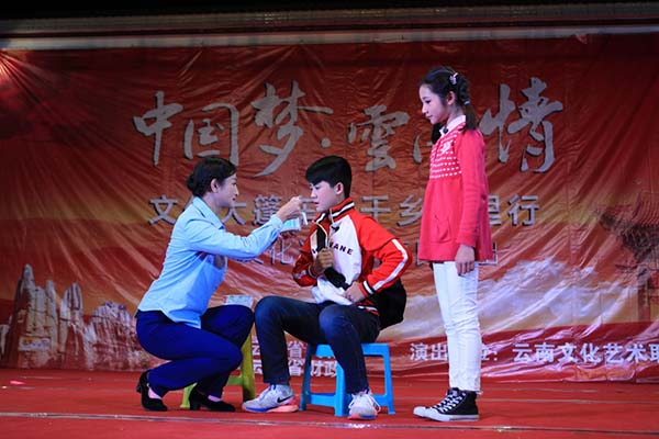 此次的《中国梦•云南情—“文化大篷车•千乡万里行”》演出,是我院按照省文化厅2015年“文化大篷车•千乡万里行”文化惠民演出的总体部署和安排,认真践行习近平总书记要求的“文艺要为人民群众服务,为社会主义服务”的精神,以加大对农村和欠发达地区文化建设的帮扶力度,丰富群众精神文化生活为目的,经政府采购我院应标的惠民工程。学院2015年度完成了滇中新区、五华区共10场演出任务,近3万群众观看了我们的表演。