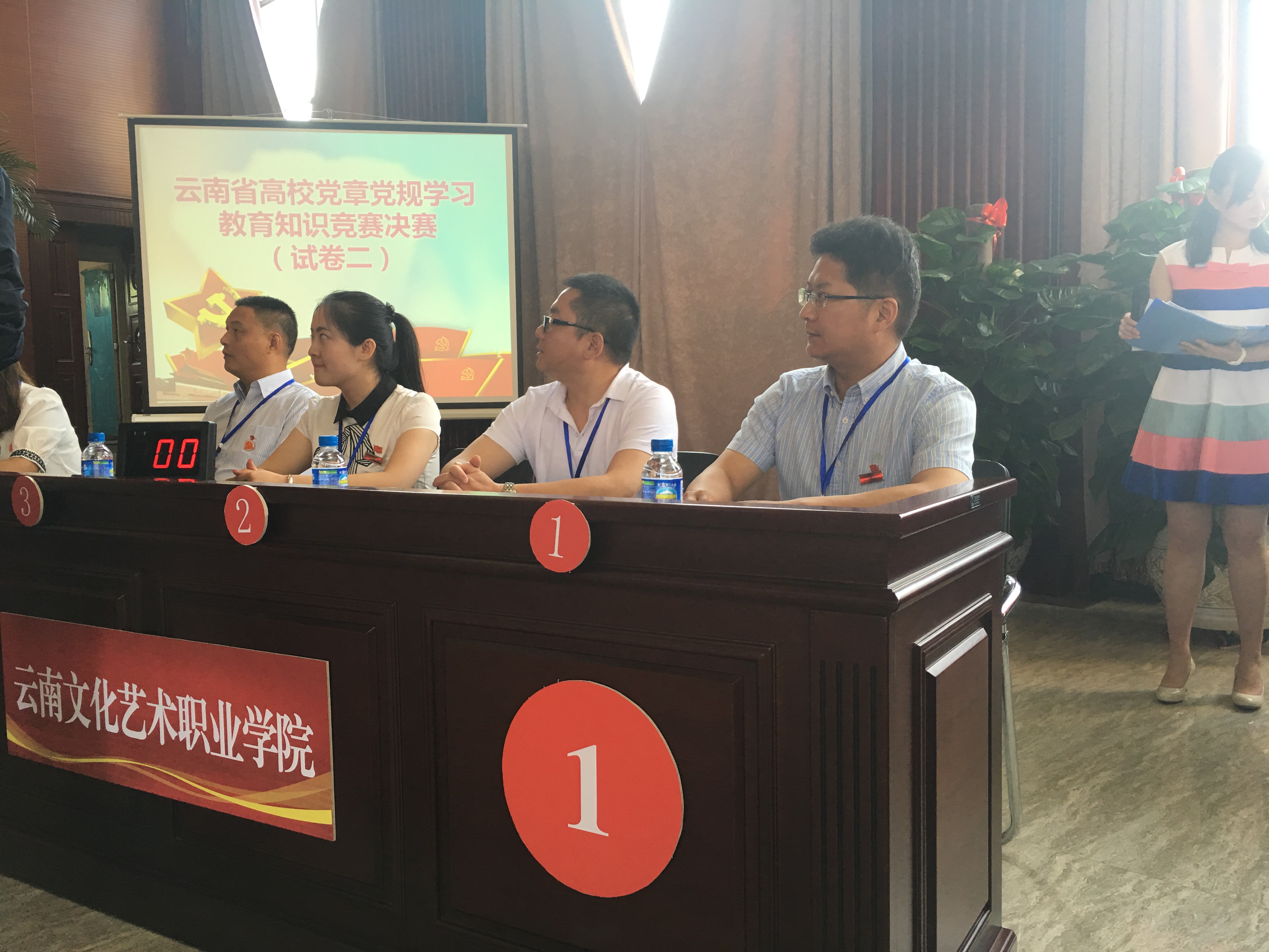 根据中共云南省委关于开展党章党规“进党校、进课堂、进媒体”学习教育的精神,为切实推进高校“学党章党规、学系列讲话,做合格共产党员”学习教育(以下简称“两学一做”学习教育),由省委高校工委、省教育厅在全省高校组织开展了这次党章党规知识竞赛活动。整个比赛分为两个阶段:第一阶段复赛,分公办本科高校、公办高职高专学校、民办高校三场进行,三场比赛各选出 5 所学校的代表队进入决赛。第二阶段决赛,由复赛选拔产生的15个代表队不分公办民办、本科专科,混合分组进行比赛,按最后总得分高低确定一、二、三等奖。