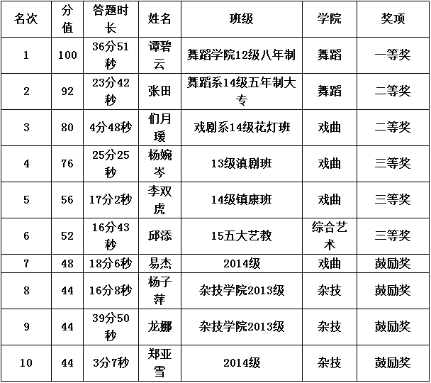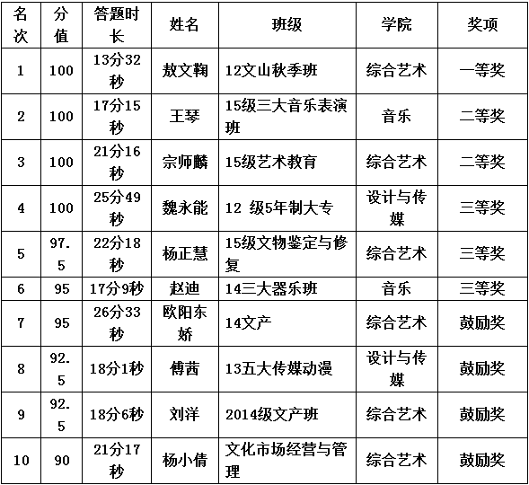 根据学院“两学一做”学习教育的安排部署,由思政部、学工部、团委承办的2016年学生党章党规知识竞赛活动于2016年6月17日圆满结束。竞赛以微信方式进行,开放时间为2016年6月15日至6月17日,竞赛时限为60分钟。在成功答题的数据中以成绩、答题时间、参赛人数为基础,决出各种奖项通报如下: