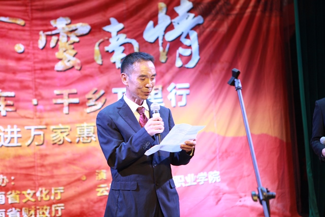 2016年7月3日下午,云南文化艺术职业学院“文化大篷车.千乡万里情”惠民演出队走进呈贡七甸滇剧传习馆,为当地的老百姓带去了一场精彩绝伦的演出。云南文化艺术职业学院副院长王润梅亲自带队,并在演出现场致辞。滇剧传习馆李有才总经理也上台致辞,为我院师生的精彩表演表示感谢。