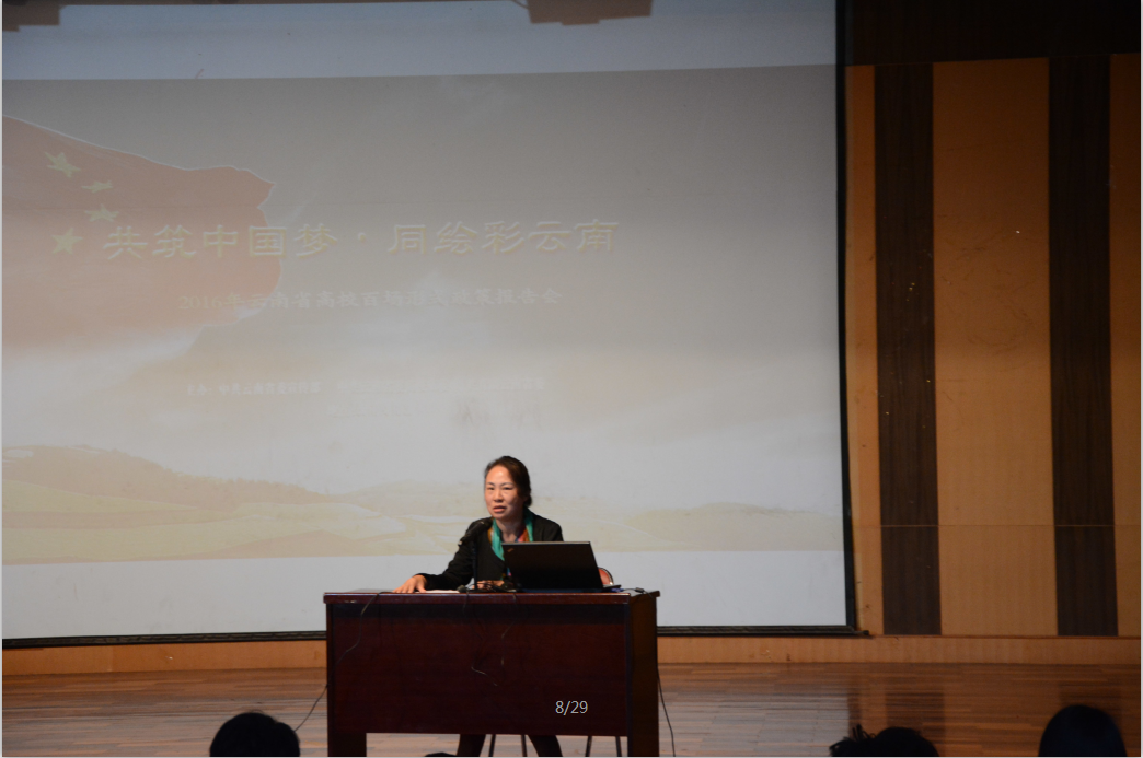 10月13日14:00,我校在音乐厅举行了“共筑中国梦•同绘彩云南”——习近平总书记“七一”讲话的历史解读宣讲报告会,专题宣讲习近平总书记在庆祝建党95周年大会上的讲话精神。本次讲座邀请到了省委宣讲团“走基层”宣讲成员、省委党校党史教研部副主任熊黎明教授,深入解读习近平总书记“七一”讲话对中国共产党的伟大历史贡献的评价与总结,解读“坚持不忘初心,继续前进”的深刻内涵。学校师生及入党积极分子230人参加报告会。报告会由党委宣传部部长张毅老师主持。