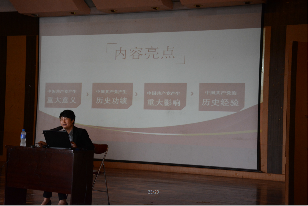 讲座结束后,张毅老师进行了总结。熊教授深刻解读了习近平总书记在庆祝建党95周年大会上的讲话,深刻阐述了我们党为中华民族作出的伟大历史贡献,科学概括了历史给予我们的深刻启示。同时,学习贯彻好习近平总书记“七一”讲话精神,是当前的重要政治任务,全校师生要进一步把习近平总书记讲话精神学习好、领会好、贯彻好。