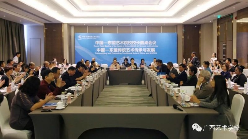为进一步推动中国与东盟国家艺术院校的交流与发展,探索构建中国与东盟艺术教育合作与发展的新路径,2017年9月11日下午,中国-东盟艺术院校校长圆桌会议在广西南宁成功举办。中国文化部文化科技司、自治区文化厅代表,文化部共建艺术高校、艺术职业院校校长,全国文化艺术职业教育教学指导委员会专家及国内省(市、区)参会代表,东盟10国文化部或艺术院校主管部门官员、艺术院校校长、东盟基金会官员、东盟秘书处官员、中国—东盟中心官员等嘉宾参加了会议。