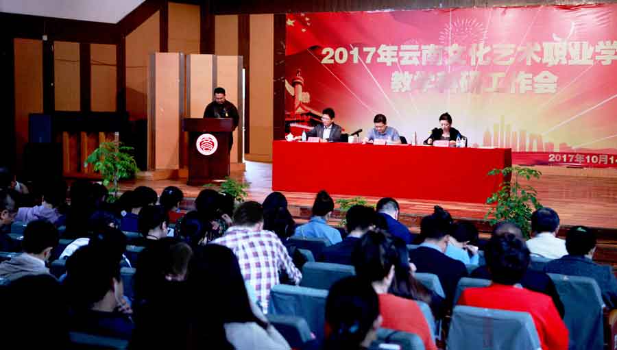 10月14日,云南文化艺术职业学院2017年教学科研工作会在学校音乐厅圆满落幕。党委副书记、校长王润梅作《坚持立德树人根本任务 比学赶超 争创一流高职艺术院校》的主题报告,学校党委书记欧阳俊虎作总结讲话,副校长刘鉴允主持会议,全体教职工、老教师代表参加了会议。