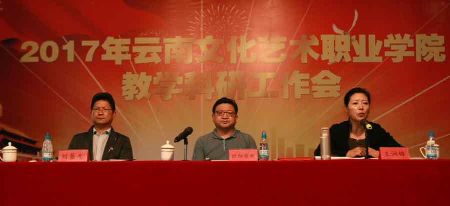 会议全面总结了近年来教学科研工作。王润梅校长指出,通过加强专业建设、课程建设、师资队伍建设、实践教学、教学诊改、科研培育、学术道德建设、课题艺术创作申报、科研平台建设等工作,学校全面提高了教学质量,深化了内涵建设、特色建设。2016年学校顺利完成了云南省高职院校教学内部质量保证体系诊断与改进工作,2017年学校荣膺全国高职院校“国际影响力50强”。