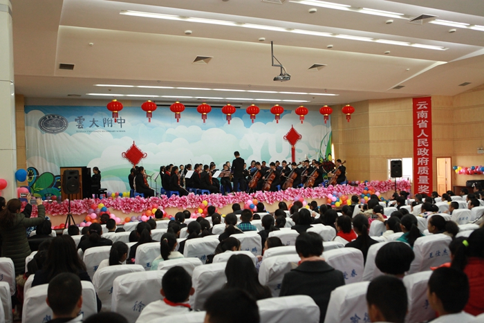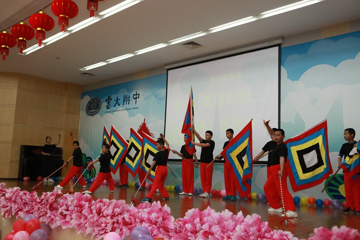 2018年1月12日,学校戏曲学院王和平、杨洪飞、李婷怡、李艳、李夙元等教师带领戏曲学院相关学生,到云大附中与选修滇剧课程的附中学生,共同上演了一场精彩的汇报演出。