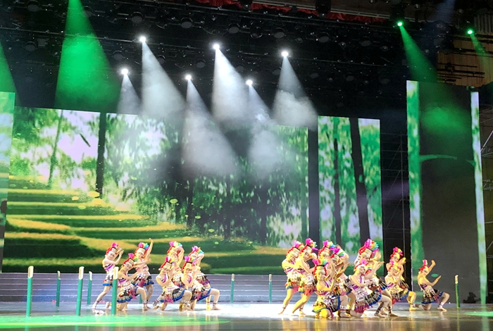 舞蹈剧目《咿板嘟》以云南哈尼族民间竹筒舞为原形,以一群哈尼族小姑娘为表现载体,欢快的舞蹈体现出美丽的哈尼族姑娘勤劳质朴、热爱生活的精神风貌。《咿板嘟》曾获全国第十届“桃李杯”比赛二等奖、第九届全国舞蹈“荷花奖”校园舞蹈大赛专业组金奖。此次参加中华优秀传统文化艺术表演赛,再次获得了导演组的一致好评。