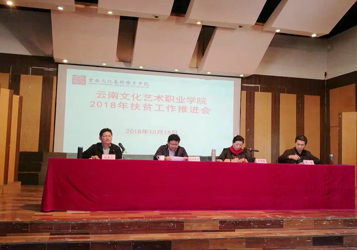 10月18日下午,学校在音乐厅召开了云南文化艺术职业学院2018年度扶贫工作推进会。党委书记欧阳俊虎,党委副书记、校长王润梅,党委副书记刘鉴允,副校长翟斌及全体教职工参会,会议由王润梅校长主持。