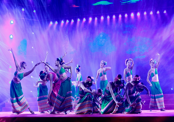 演出开始之前,西南林业大学副校长赵龙庆发表了热情洋溢的讲话,对云南文化艺术职业学院的演出表示感谢,勉励西林的同学们要重视美育,加强艺术修养。云南文化艺术职业学院党委副书记、校长王润梅代表学校向西林赠送了书法作品。晚会在傣族舞蹈《勐优芬巴美》清幽的节奏中拉开帷幕。