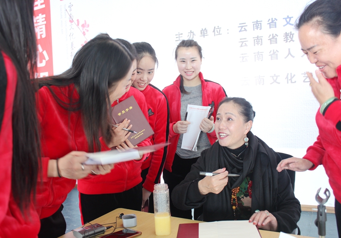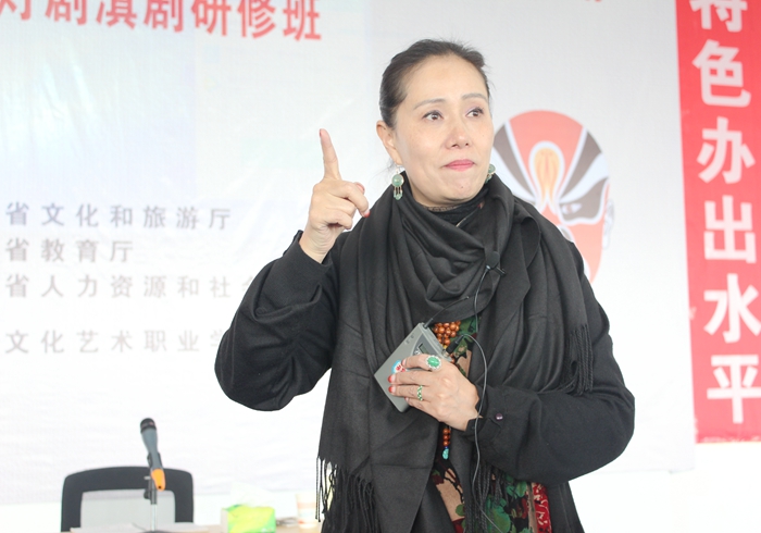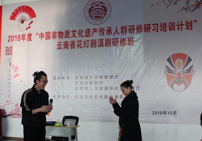 12月4日,2018年度“中国非物质文化遗产传承人群研修研习培训计划”云南文化艺术职业学院花灯剧、滇剧研修班邀请李红梅老师与研修班学员们交流表演心得,探讨表演技巧。李红梅老师为国家一级演员,现任云南省戏剧家协会副主席。