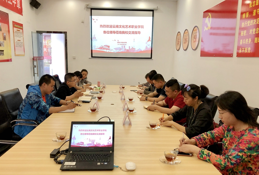 为提升学院创新创业工作水平,打造优质大学生校园双创平台,2019年4月23日,云南文化艺术职业学院副院长陈建民带领教学质量总监王蒙,招生就业处、教务处、设计与传媒学院相关教师到云南大学滇池学院创新创业学院进行交流学习。