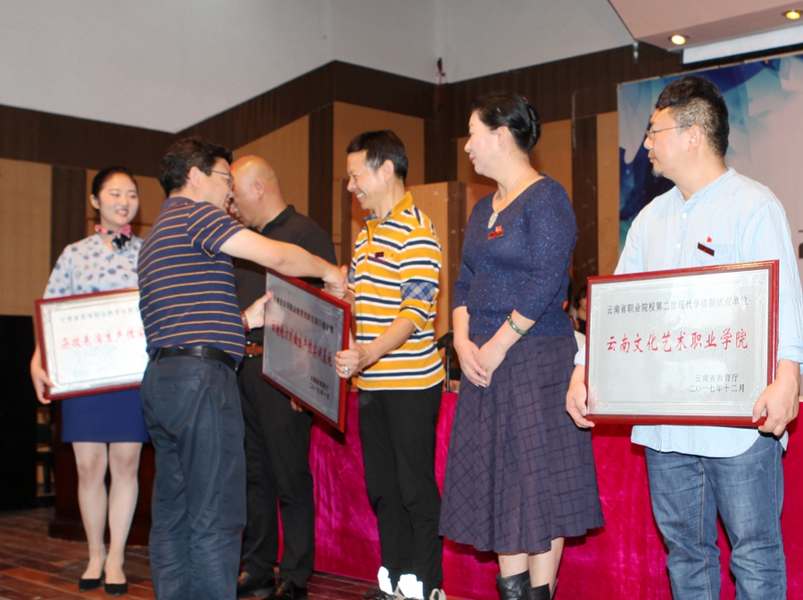 会上,欧阳俊虎书记为学院获批的云南省高等职业教育创新发展行动计划骨干专业、实训基地、技能大赛工作室、现代学徒制试点专业颁授牌匾。王润梅院长宣布了学院2019艺术节获奖情况,学院院级、省级、国家级技能大赛获奖情况和第五届互联网+学生获奖情况。