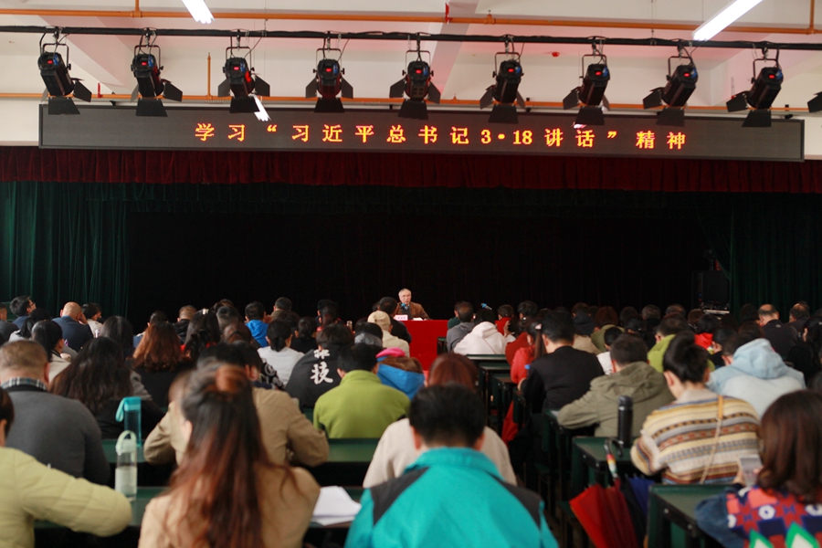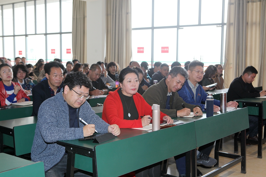 为深入学习习近平总书记在全国学校思想政治理论课教师座谈会上讲话精神和落实中共中央办公厅 国务院办公厅印发《关于深化新时代学校思想政治理论课改革创新的若干意见》的通知,2019年9月26日,学院特邀赴京参加2019年3月18日由习近平总书记亲自主持召开的全国学校思想政治理论课教师座谈会代表、中央马克思主义理论研究和建设工程首席专家、全国高校优秀思想政治理论课示范课百人巡讲团成员、云南民族大学教授张建国到我校作专题讲座。学院全体教职工、部分学生代表参加报告会,学院党委副书记刘鉴允主持报告会。