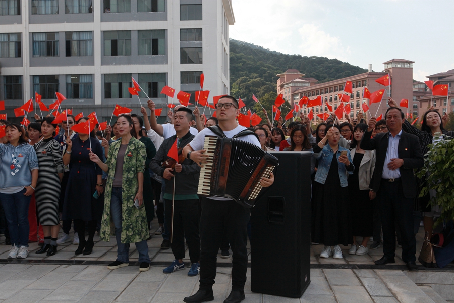 活动中,《我和我的祖国》《歌唱祖国》《我的中国心》《不忘初心》《爱我中华》《我们都是追梦人》《走进新时代》……一首首耳熟能详的歌曲接踵而至,一曲曲歌颂祖国、歌颂党的红歌在校园响起,广大师生员工受到了一次深刻的爱国主义教育。歌声表达出全院师生员工对祖国的无限热爱和美好祝愿。