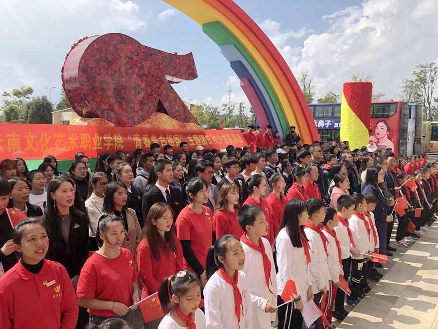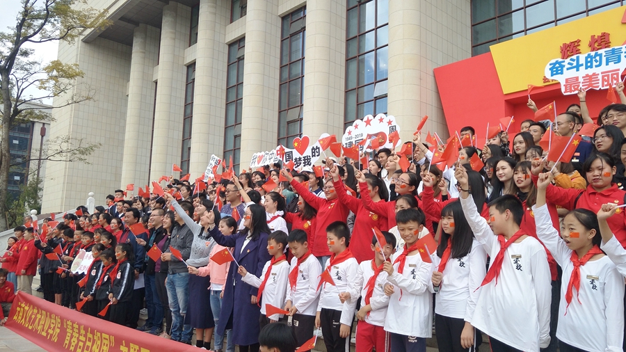 为庆祝中华人民共和国成立70周年,深入学习宣传贯彻习近平总书记在庆祝中华人民共和国成立70周年大会上的重要讲话精神,10月17日,云南文化艺术职业学院“青春告白祖国”主题团日和少先队活动在云南文学艺术馆举行。学院学生会成员、志愿者协会、社团干部、少先队代表、二级学院学生代表共计200余人参加活动。