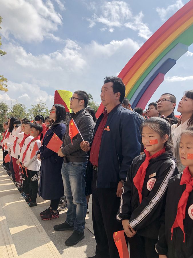 全体共青团员面向鲜艳的团旗,高举右拳,在戏曲学院毕光德老师的带领下,重温入团誓词,全体少先队员面向鲜艳的少先队队旗敬队礼,在团委倪薇老师的带领下,重温入少先队誓词。全体人员挥舞着手中的五星红旗,齐唱《我和我的祖国》,表达了对祖国母亲的无限热爱之情,将主题团日、少先队活动推向高潮。