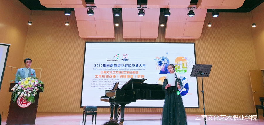 2020年1月6日至7日,2020年云南省职业院校技能大赛钢琴演奏赛项在云南文化艺术职业学院音乐厅如期开赛。来自云南能源职业技术学院、云南旅游职业学院、云南经济管理学院、云南工贸职业技术学院、丽江师范高等专科学校、昆明艺术职业学院、云南文化艺术职业学院等7所院校的15名选手经过层层选拔,于滇池之滨、西山之麓顺利会师。