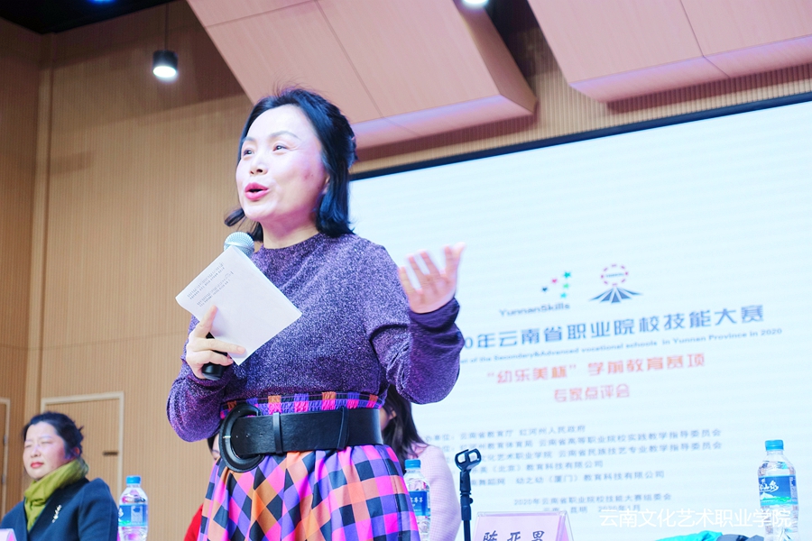 北京水米田教育集团总园长陈亚男、昆明市人民政府机关幼儿园园长邢保华、昆明学院学前与特殊教育学院院长助理高春玲对本次大赛进行了点评,她对 “幼儿园保教活动课件制作、幼儿园保教活动分析”中的优秀参赛作品给予了表扬与肯定,同时也提出“将艺术审美贯穿于整个幼儿教育,将心理学、教育学等理论知识灵活运用在幼儿教育的实践工作中”等宝贵的意见与建议。