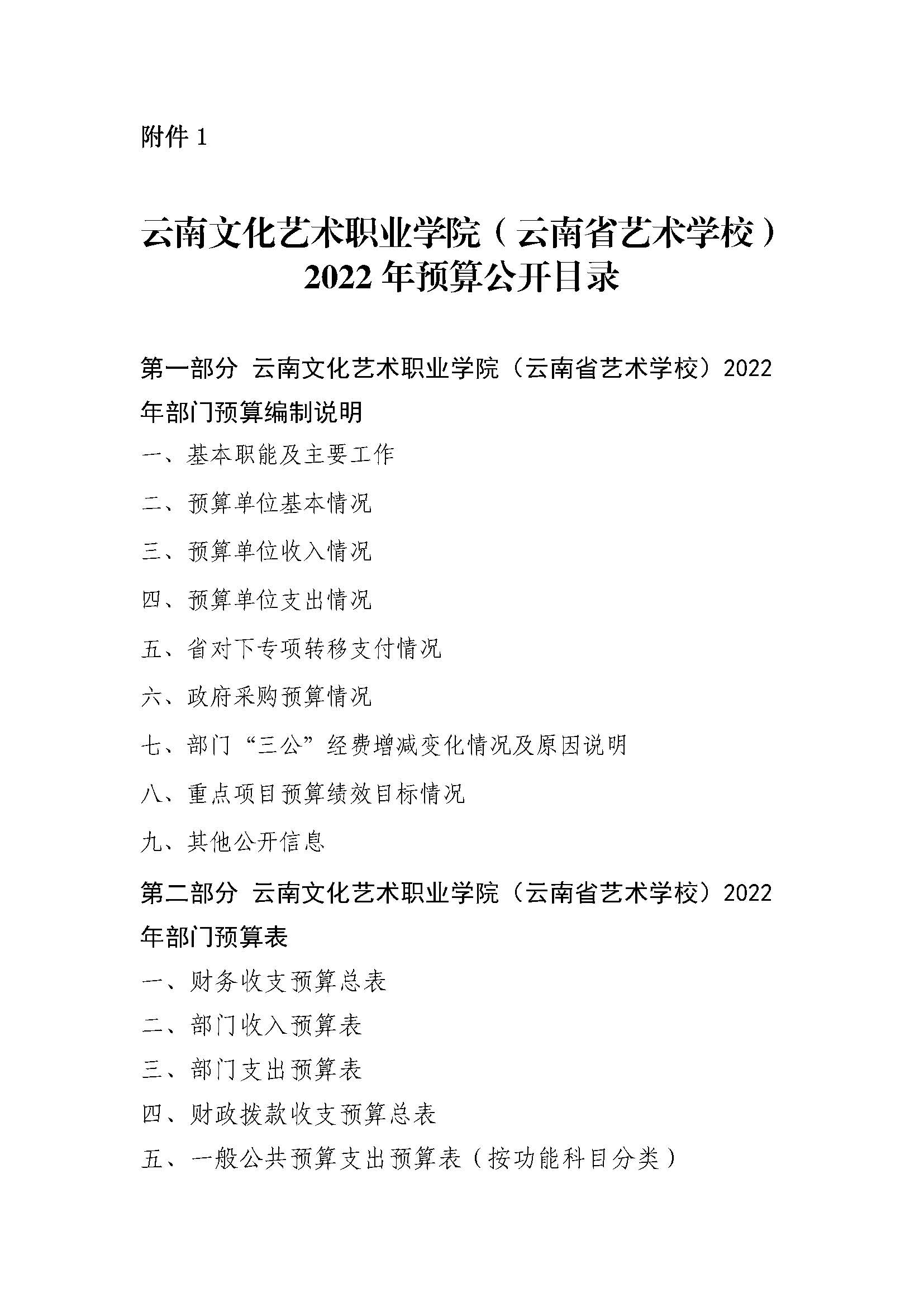 2022 年预算公开目录