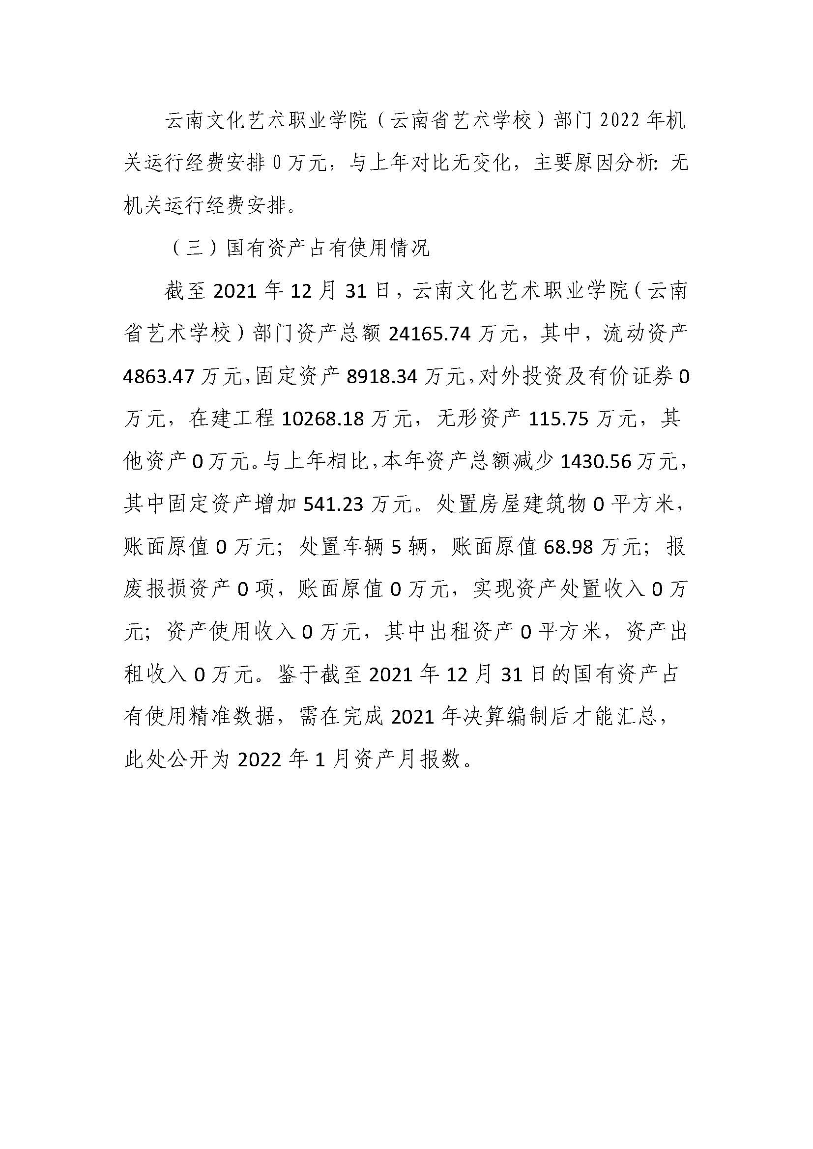 云南文化艺术职业学院(云南省艺术学校)2022年预算批复