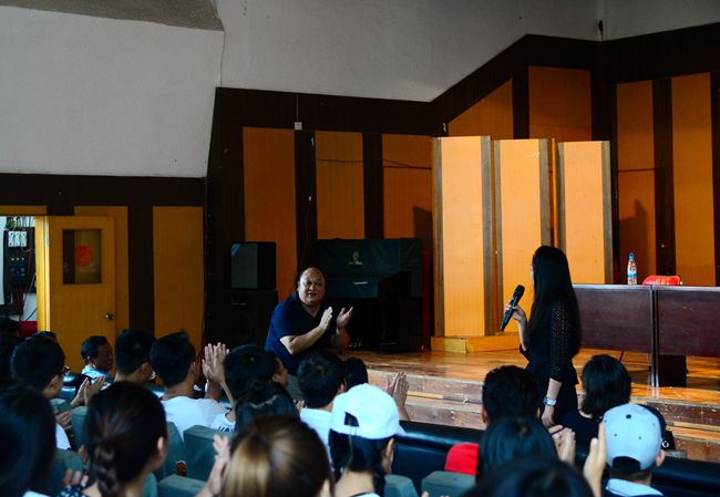 在会上,谢红亮老师介绍了自己的成长经历与奋斗历程,回顾在母校就读时的学习情景,谢老师感慨万分,感谢母校给予自己的关怀和培养,谢老师用自己的经历勉励同学们将省艺校音乐科良好的学习氛围、求知明理的精神传承下去。